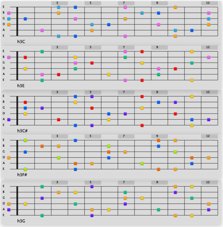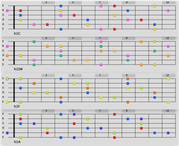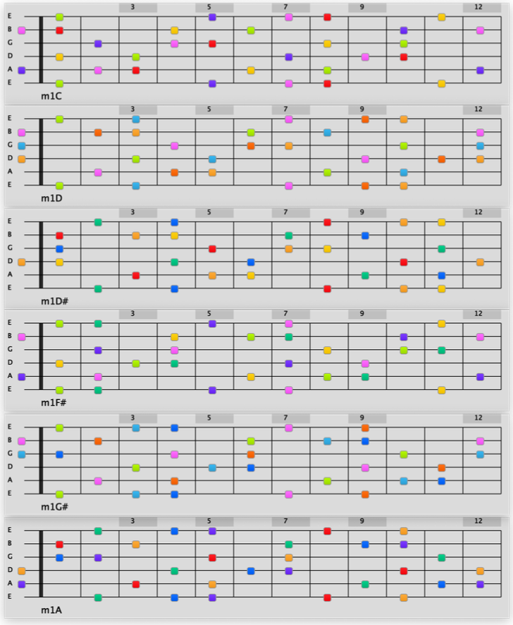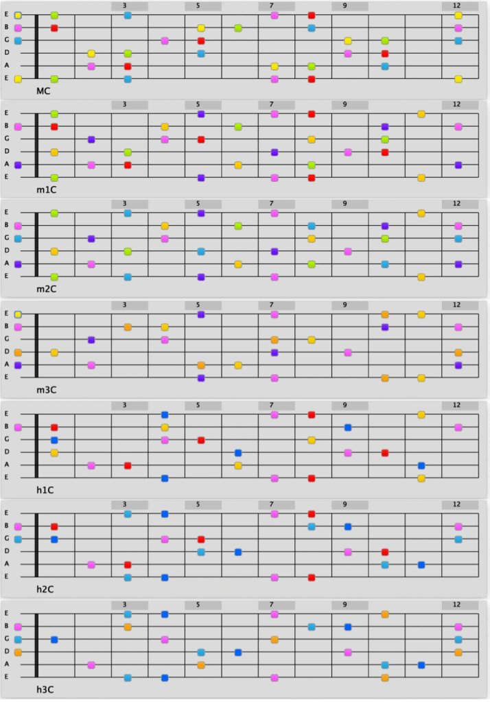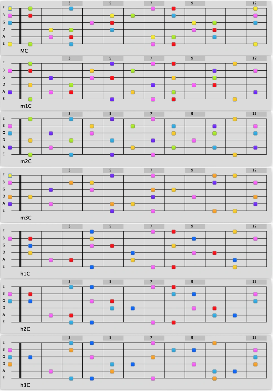 Tonal Signatures for Guitar in C diagrams: Fabrice Mogini